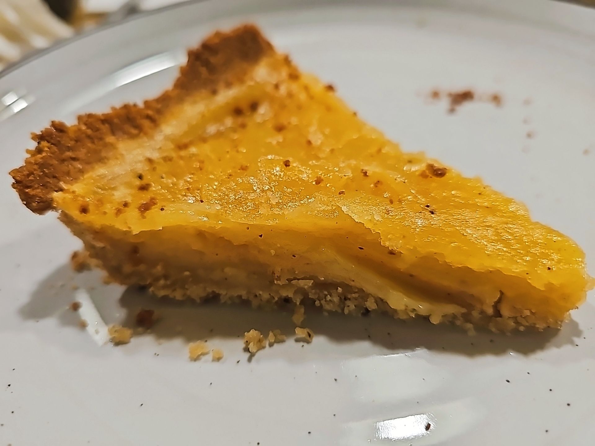 Anyway, I made the custard-like filling, chilled it, poured it into the crust, and baked. The top edge of my far-too-tall crust went a little beyond golden, but that caramelized crunch turned out to be delicious.
