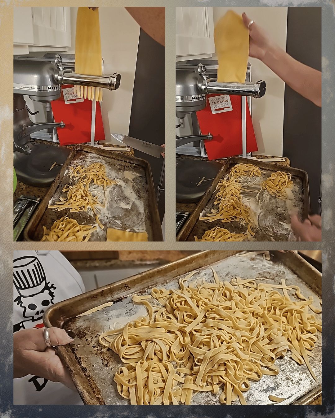 Then came the fun part: rolling and cutting. I fed the dough through the pasta roller, thinner with each pass, then switched to the fettuccine cutter. I wanted noodles sturdy enough to hold that meaty sauce.
