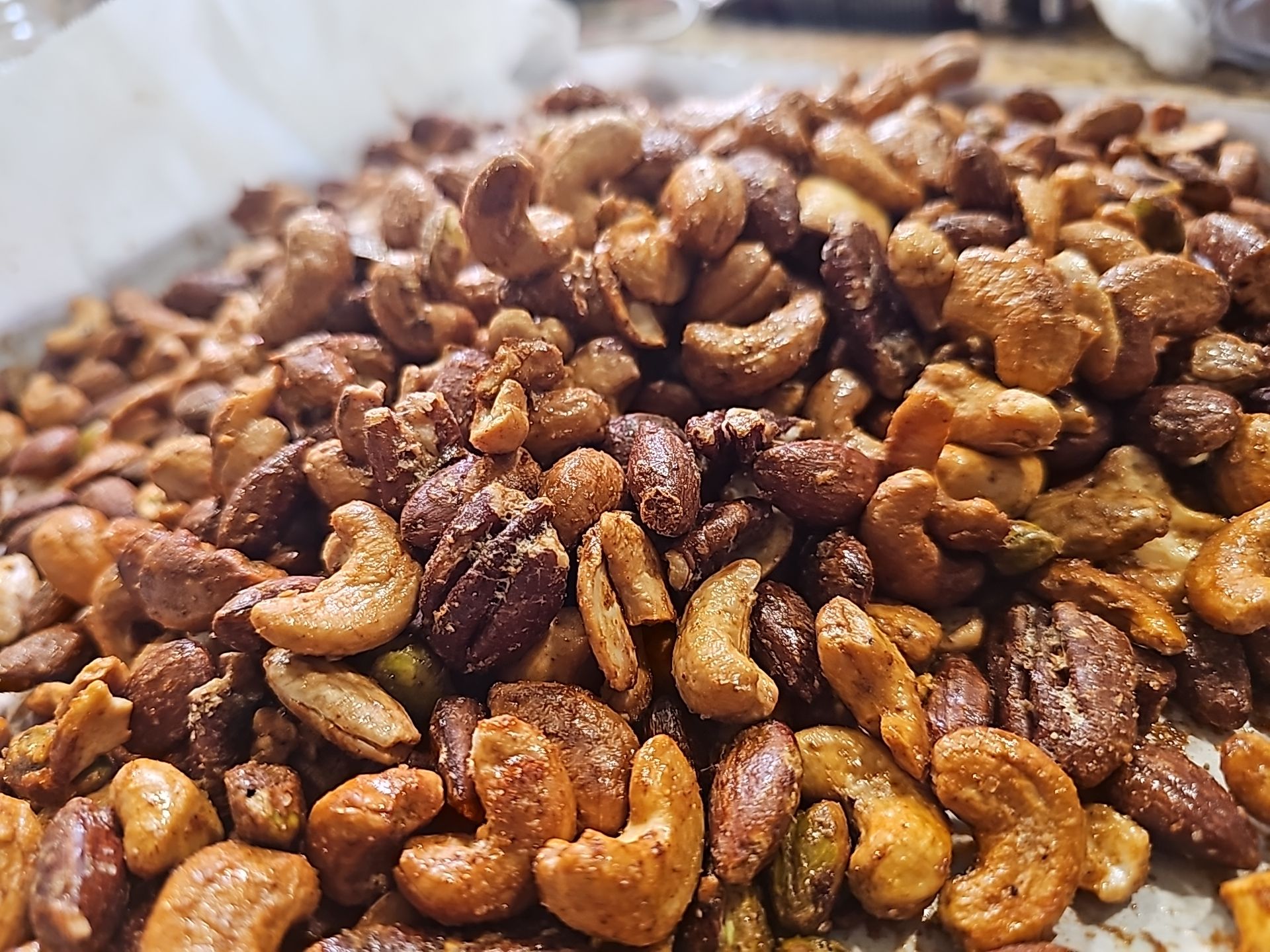 So, as I usually do, I ordered groceries for pickup: four rib chops, radishes, a carrot, an apple, something approximating Boston lettuce, and 2.5 pounds of nuts. (The recipe calls for five pounds, but I don’t exactly have a bar crowd on standby.)