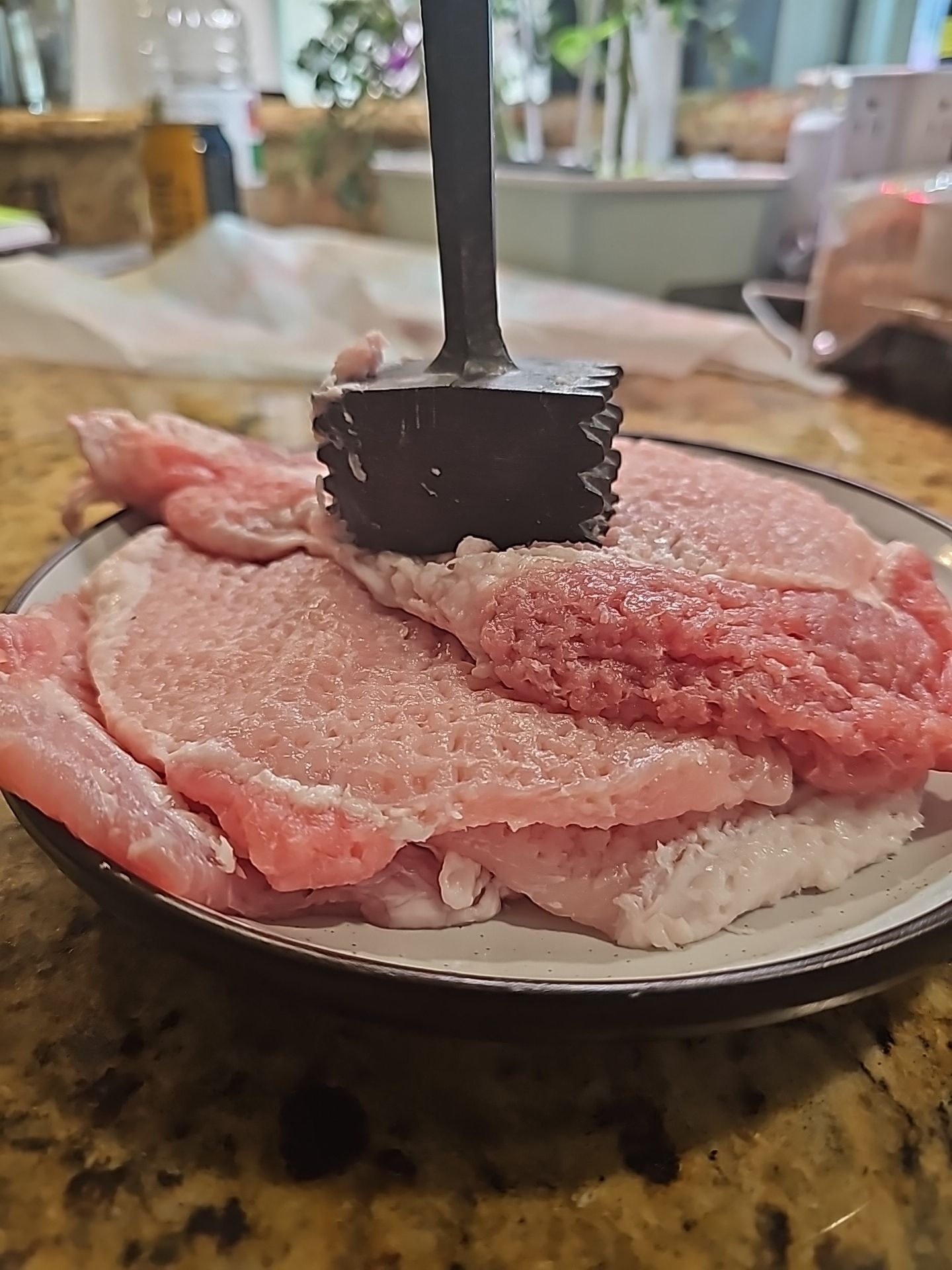 Considering I had to pound them to a quarter-inch thick, I preferred the thinner ones. Still, I pounded away until you could almost see through them. I complained to the ghost about the amount of pounding. He eyed my meat mallet and raised an eyebrow.